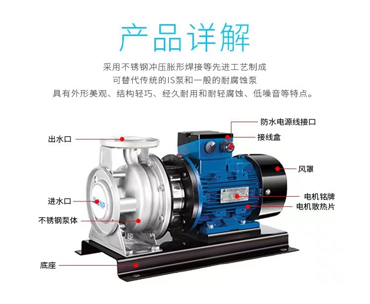 南方ZS不銹鋼臥式單級(jí)離心泵,泵體采用不銹鋼板沖壓脹形焊接工藝制成,可替代傳統(tǒng)的IS泵和一般的耐腐蝕泵,軸向入口和徑向出口。